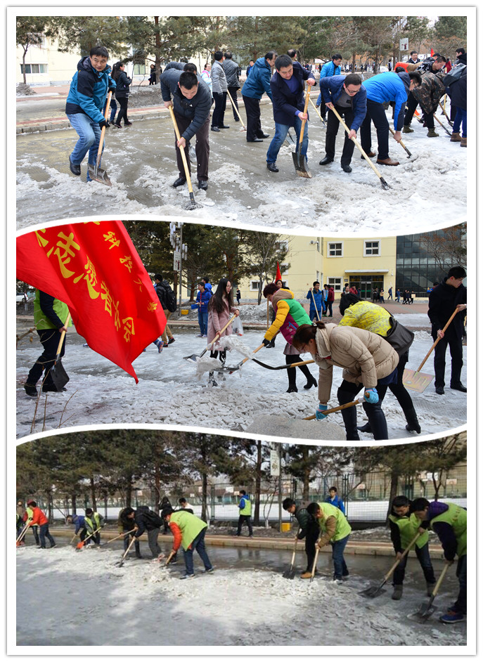 3月9日中午,米兰(中国)一站式服务平台青年志愿者、学生干部和专职学生工作干部180余人集中开展了清冰雪活动。米兰(中国)一站式服务平台党政领导参与了此次活动,与师生一道投入到志愿服务活动中,展开了一幅热火朝天的劳动画面,构筑了一道亮丽的风景线。在大家的共同努力下,人流集中的通江路沉积的冰雪被清除,为师生们开辟了一条安全之路,使这个春风寒峭的三月变得格外温暖。