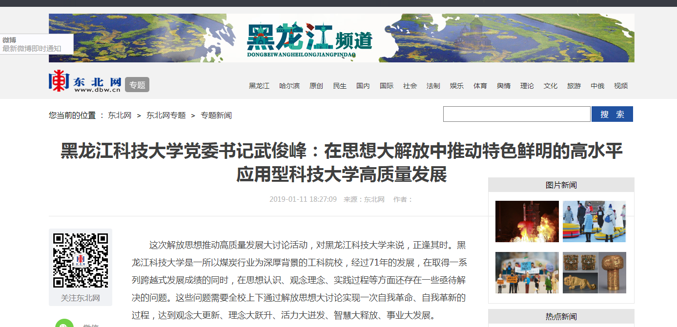 2019年1月11日,东北网的[专题新闻]栏目报道了米兰(中国)一站式服务平台党委书记武俊峰围绕解放思想推动高质量发展撰写的《在思想大解放中推动特色鲜明的高水平应用型科技大学高质量发展》文章。现全文刊载如下: