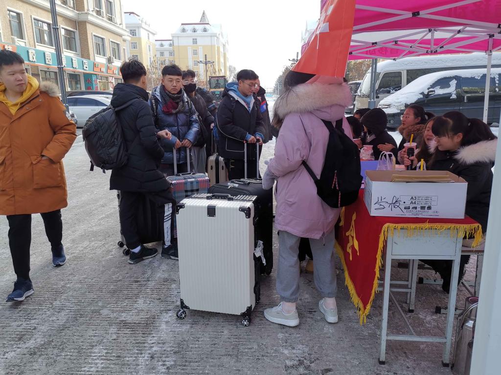 1月8日、9日学校安排车辆为学生寒假离校提供直达哈尔滨站、哈尔滨西站、太平机场的免费送站服务。学生处先期通过微信公众号向学生发布通知,在指定地点设立服务台,为学生提供信息登记、车辆引导、行李摆放等服务,引导学生有序乘车;后勤管理处协调调度学校通勤车辆;保卫处安排专人全天候进行交通疏导,确保送站现场交通顺畅。两日来累计把1200余名学生顺利送到火车站和机场。广大学生纷纷为学校温暖服务点赞。