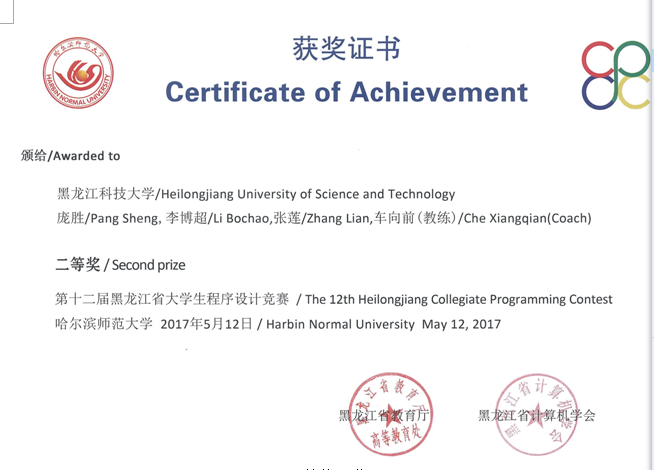 5月11日至5月12日,黑龙江省第十二届大学生程序设计竞赛在哈尔滨师范大学举行。本届比赛由黑龙江省教育厅和黑龙江省计算机学会主办,哈尔滨师范大学承办。共有来自哈尔滨工业大学、哈尔滨工程大学、东北林业大学和哈尔滨理工大学等省内25所院校的153支队伍参加。