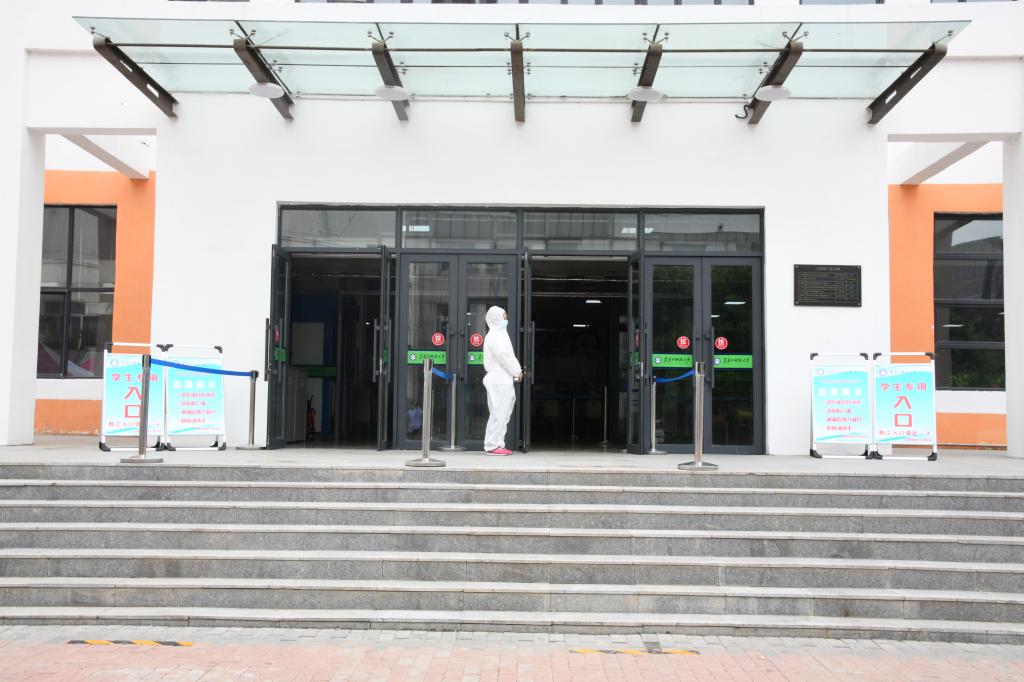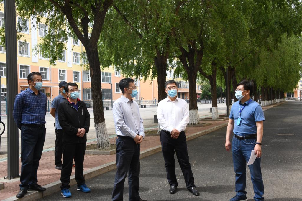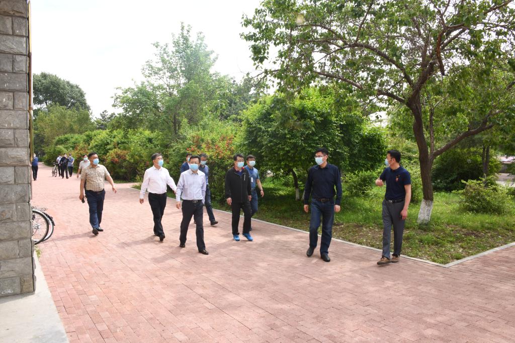 校领导率队对第一批学生返校所涉及的接站、入校、入住隔离寝室、到实验室学习、到食堂就餐等场景进行了模拟演练,并对家属区与校园物理隔离情况、实验室、应急隔离室、浴池等场所准备情况进行检查验收。