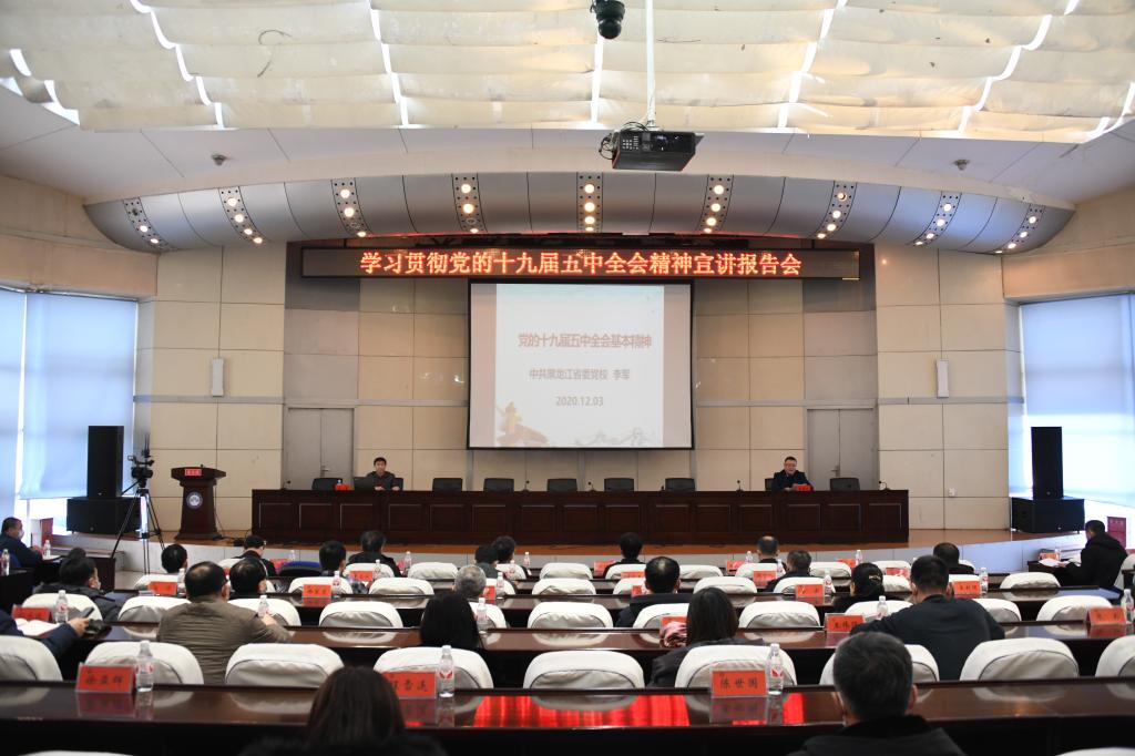 12月3日下午,米兰(中国)一站式服务平台在办公楼报告厅举行学习贯彻党的十九届五中全会精神宣讲报告会。省委宣讲团成员、黑龙江省委党校、省行政学院李军教授应邀作专题宣讲报告。学校在校领导班子成员、全校处级干部和全体辅导员共同参加报告会。报告会由党委宣传部常务副部长、统战部部长、教师工作部部长何景洋主持。按照疫情防控要求,设主会场和分会场。
