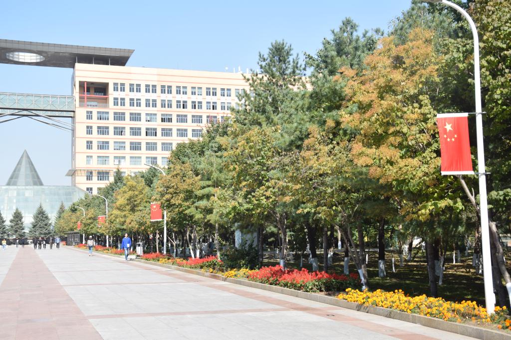 围绕庆祝新中国成立70周年,深入开展“不忘初心、牢记使命”主题教育,党委宣传部专门设计了“不忘初心、牢记使命”“厚德博学、强吾兴邦”宣传标语,悬挂在办公楼前和科技大厦楼前的路灯上,共同妆点着节日的校园。