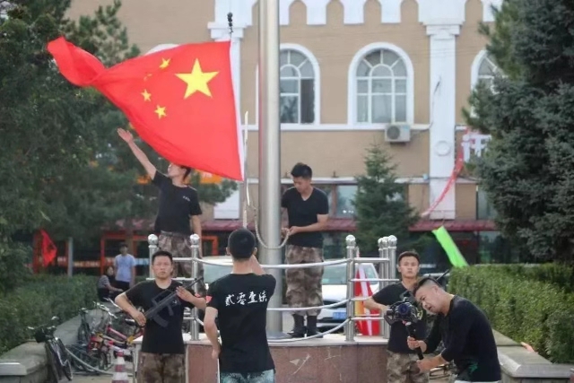 蓝天白云的映衬之下,五星红旗红的夺目,红的鼓舞人心。引来师生驻足观赏。栉风沐雨70载,五星红旗见证着新中国的成长与富强,引领着未来的发展和蓬勃昂扬。放眼望去,校园里到处都是红色的海洋,鲜艳的红旗成排成列,迎风招展,成为校园靓丽的风景线。