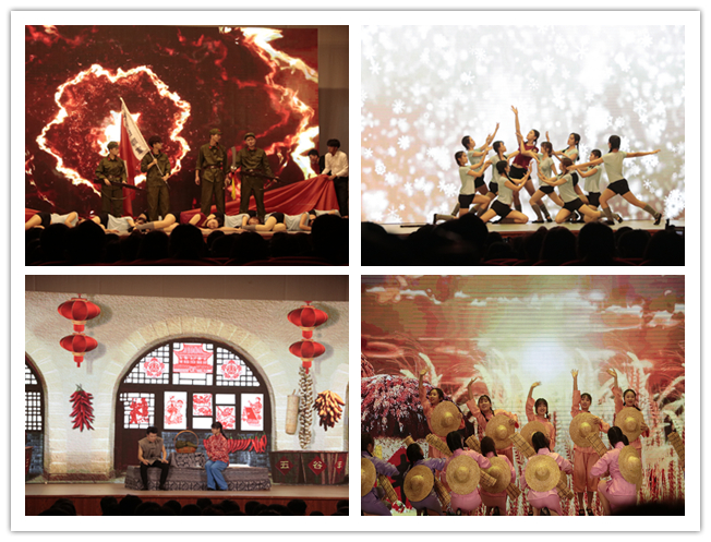 表彰大会结束后,与会的领导与嘉宾同学生代表一起观看了由大学生凤凰鸟艺术团自编自导自演的大型红色话剧《战火红旗》。