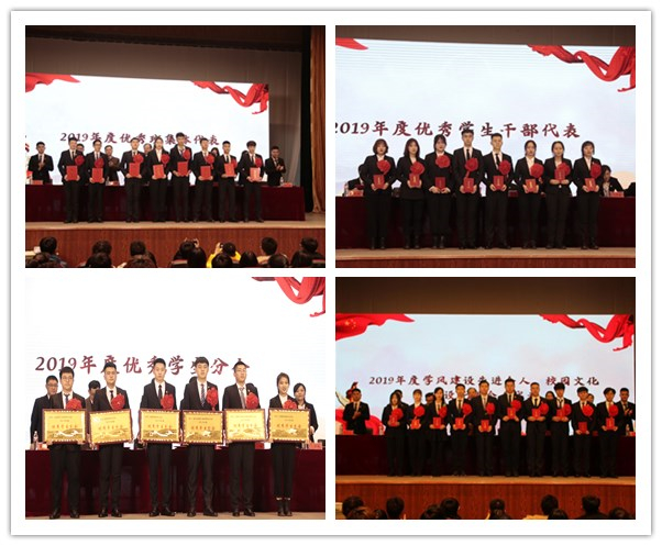 会上,马紫微宣读了《关于表彰2019年度“优秀学生分会”、“优秀班集体”、“优秀学生干部”、“学风建设先进个人”、“校园文化建设先进个人”的决定》;与会领导向受表彰的先进集体和个人代表颁发了荣誉证书;计算机与信息工程学院学生分会软件17-4班于鹏翔、电子与信息工程学院通信16-3班黄轶铂、经济学院金融16-3班姚玲玲分别代表“优秀学生分会”“优秀学生干部”“学风建设先进个人”发言。