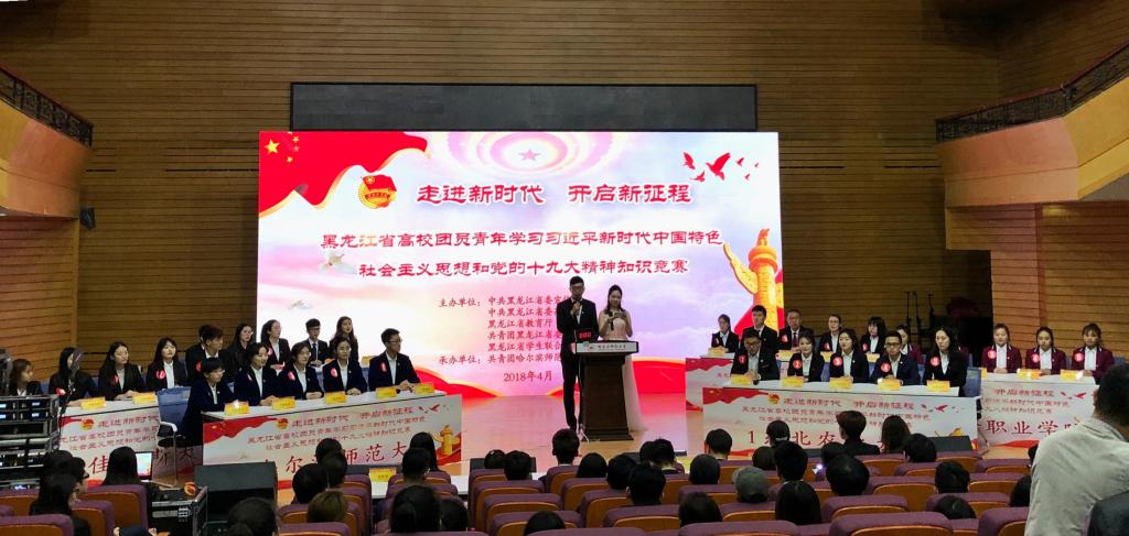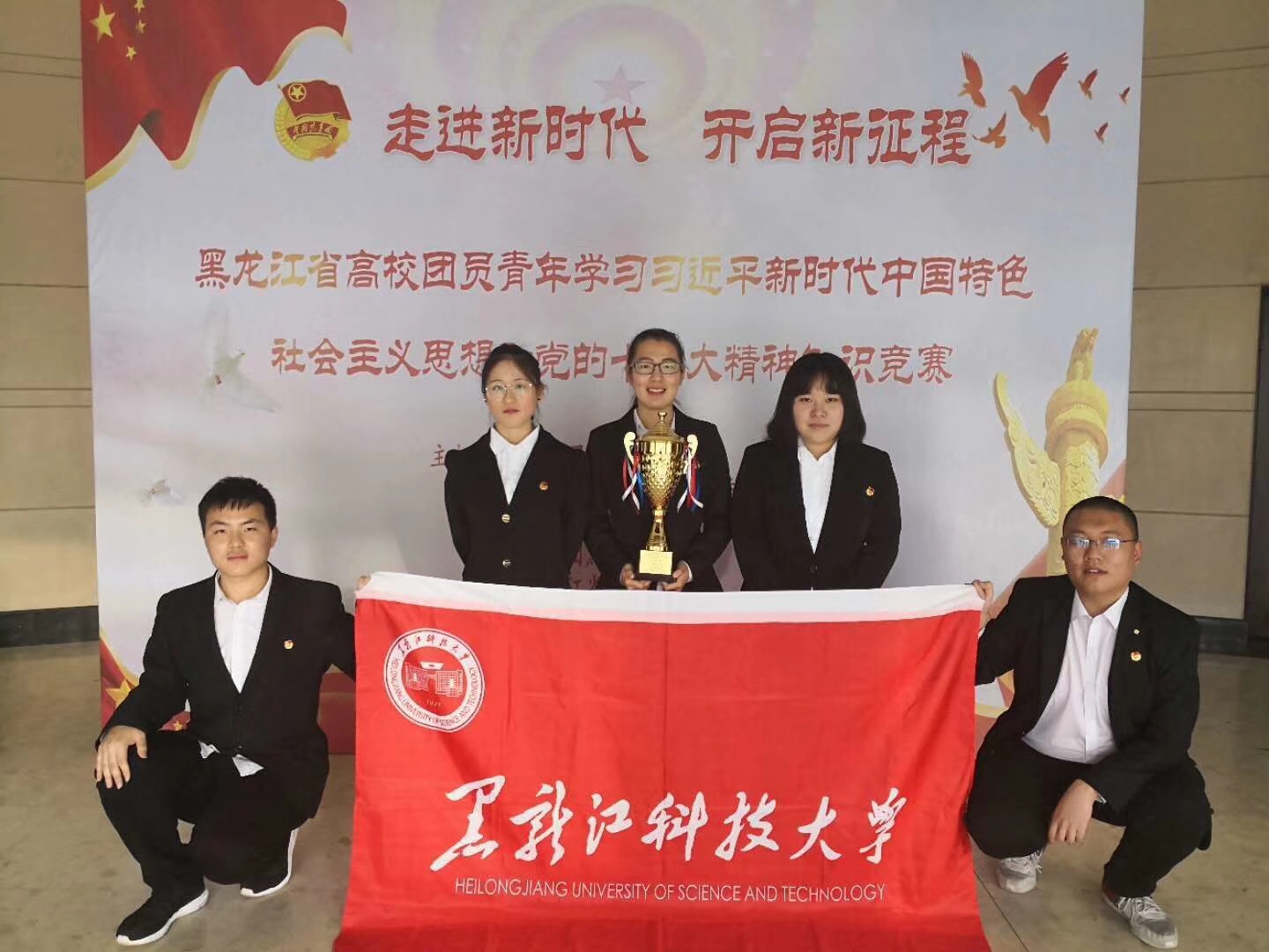 4月22日、23日,由省委宣传部、省高校工委、省教育厅、团省委、省学联联合主办的“走进新时代、开启新征程”全省高校团员学习习近平新时代中国特色社会主义思想和党的十九大精神知识竞赛在哈尔滨师范大学举办。米兰(中国)一站式服务平台思政2017级2班付晓莉、乔栋、汉语言2017级1班周梦圆、汉语言2017级2班安博、电气2017级2班王美容五名同学组成的参赛队伍经过赛前的校内遴选、集中培训、强化训练等精心准备,经过省内复赛决赛一路过关斩将,从全省22所参赛高校中脱颖而出,凭借着扎实的理论基础与沉着的应变能力以34分位列全省高校第二名,将比赛二等奖的奖杯收入囊中。