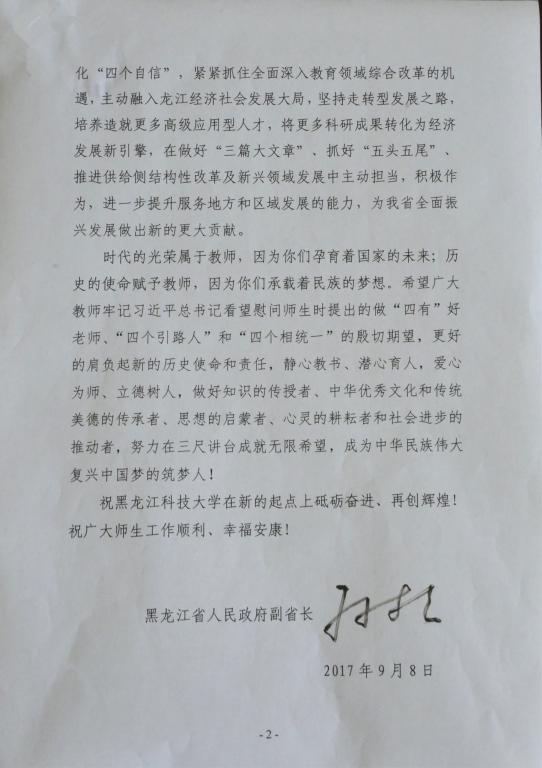 孙东生副省长致米兰官网平台庆祝教师节暨建校70周年贺信
