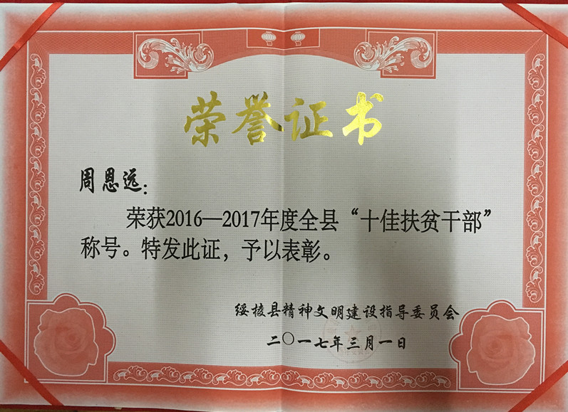 日前,绥棱县2016-2017年度“十佳百模”命名表彰暨先进事迹报告会在绥棱县文化艺术中心隆重举行。米兰(中国)一站式服务平台挂职干部周恩远同志被绥棱县文明委授予“十佳扶贫干部”荣誉称号,并代表全县扶贫干部在大会上作了典型经验交流。