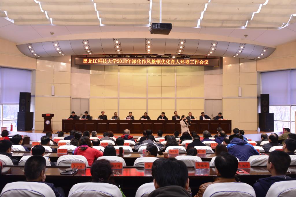 校党委书记武俊峰作了讲话,并就抓好2018年深化作风整顿优化育人环境工作提出了三个方面的要求:一是要提高政治站位,坚持使命引领与问题导向,解决学校育人环境与人才发展环境进一步优化的问题;二是要聚焦整治重点,有的放矢抓好作风整顿,聚焦依法治教、专项治理、中心工作、风清气正育人环境等方面,坚决做到立行立改;三是要从严从实,扎实推进作风整顿,要按照学校党委的统一部署,通过加强领导,突出重点,实事求是,严格督查,确保作风整顿取得预期的成效。
