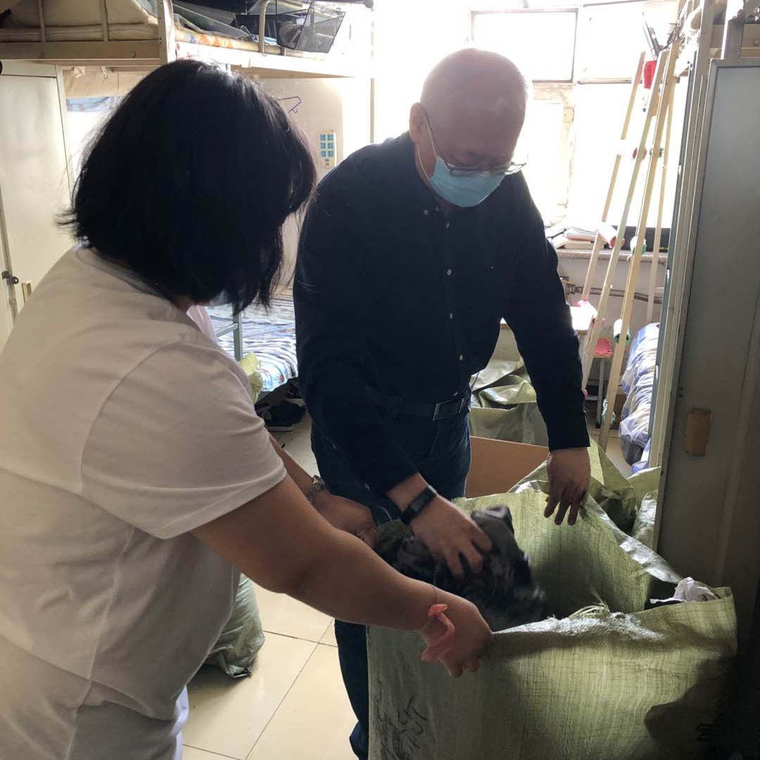 安全学院党委书记刘东江、院长张保勇为学生打包行李