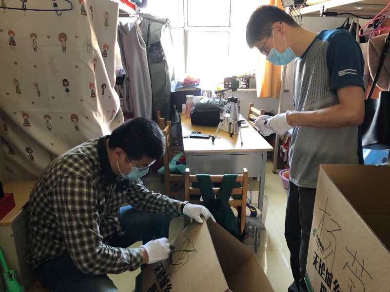 按照学校为毕业生免费邮寄个人物品部署和安排,各学院积极行动起来,制定了详细的实施方案,“一对一”征求每一名毕业生的意见,通过与毕业生现场视频连线,用“云直播”方式为学生物品进行分类、打包、装箱、标记等工作。