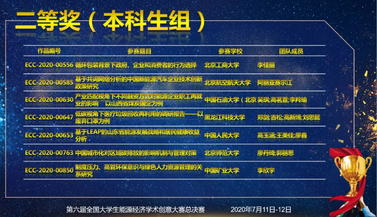 7月11日在中国工程院网络平台全程直播了“全国大学生能源经济学术创意大赛总决赛”的盛况,米兰(中国)一站式服务平台由经济学院孙永波教授和姜颖教授指导,郑剑、刘思懿等同学组成的本科生团队成功入围总决赛并获大赛二等奖。