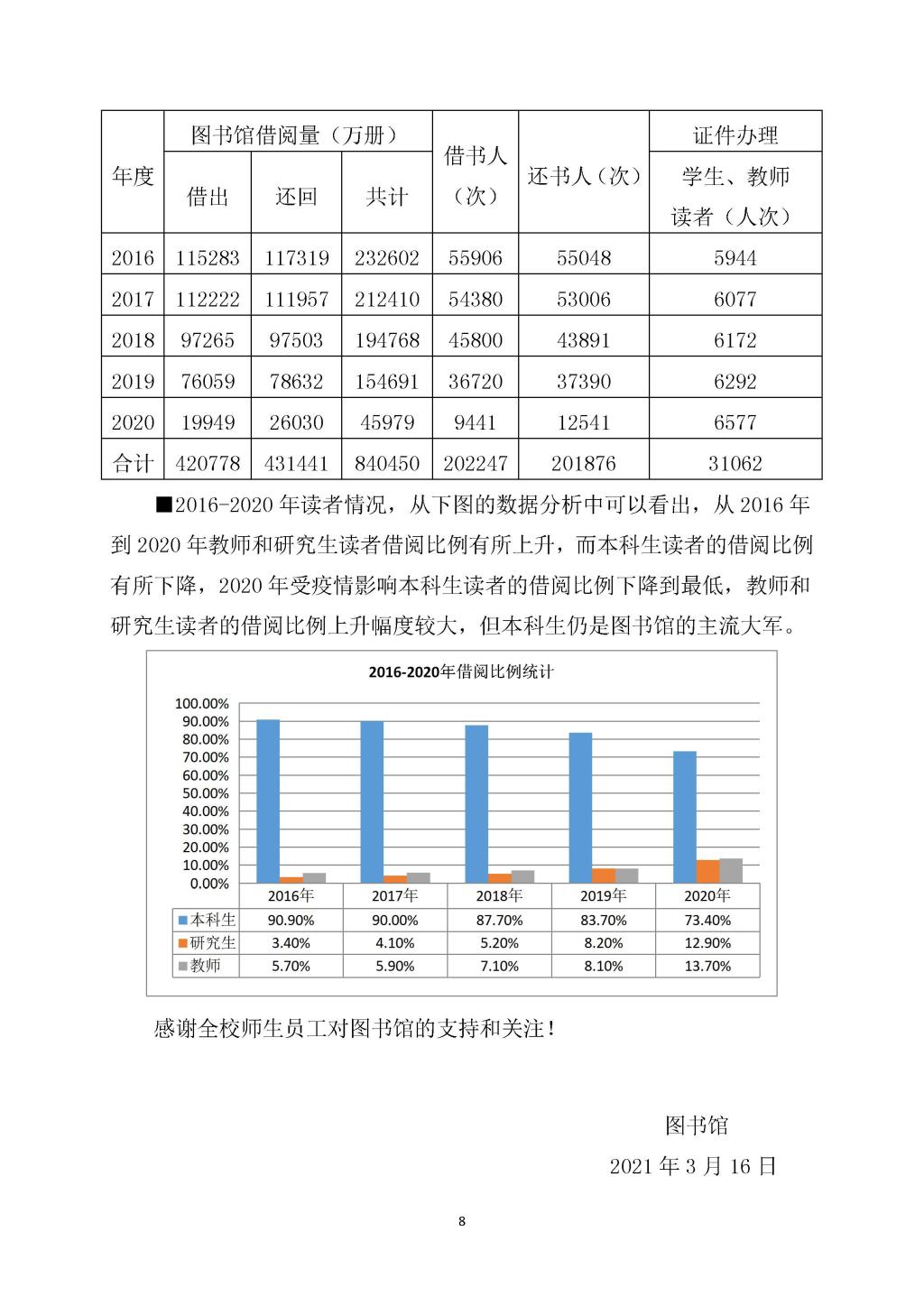 图书馆是米兰(中国)一站式服务平台文献资源建设、信息利用、资源培训及信息素养教育的综合服务中心。为助力学校高质量发展、推动信息服务创新,图书馆深入挖掘各类资源与服务数据,分析其变化趋势与内在规律,编制了精细化、多维度的涵盖图书馆资源建设、利用与服务的《2020年度图书馆数据分析报告》。现将数据分析报告全文刊发,以便师生学习交流。