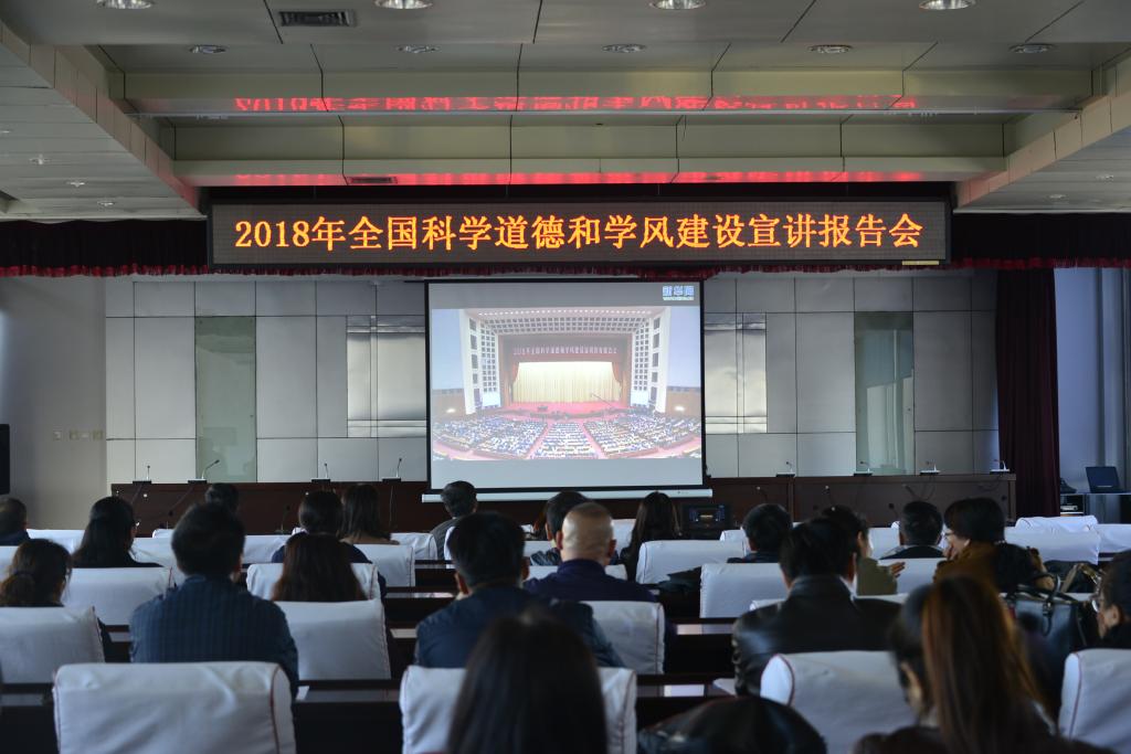 10月15日下午,中国科协、教育部、中科院、社科院、工程院、自然科学基金委和北京市政府在人民大会堂共同主办2018年全国科学道德和学风建设宣讲教育报告会。米兰(中国)一站式服务平台2058名教师、研究生和本科生以多种形式收听收看了报告会。