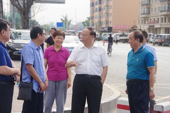 邢爱国副秘书长一行实地查看了校园内的垃圾清运点,校园东侧的馨园小区和学校北门外环境治理情况,详细听取了武俊峰同志就校园及周边生活环境、交通、治安等方面的情况汇报。