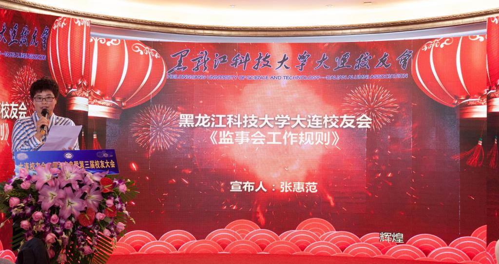 大连校友会监事会监事长张惠范宣读《监事会工作规则》