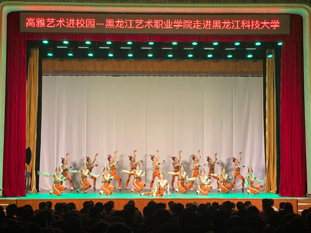 此次专场演出共表演11个节目,演出由欢快的舞蹈《小鹿也疯狂》拉开帷幕。紧接着,黑龙江艺术职业学院民乐系学生用美妙的竹笛独奏带领大家一起去欣赏《帕米尔的春天》;随后献演的二胡独奏《赛马》和歌曲《love is over》《家》《怎么说我不爱你》《共筑中国梦》等乐曲风格各异,舞蹈系学生带来的舞蹈《大河女儿》又为我们展现了一副雄伟壮阔的画卷,令人沉醉其中;戏剧影视系的学生带来的小品《一定找到你》和传媒系的学生表演的快板儿《看升旗》节目将此次专场演出氛围推向高潮;最后,伴随着原创舞蹈《绢花迎春》轻快热烈的旋律,本次演出圆满落下了帷幕。