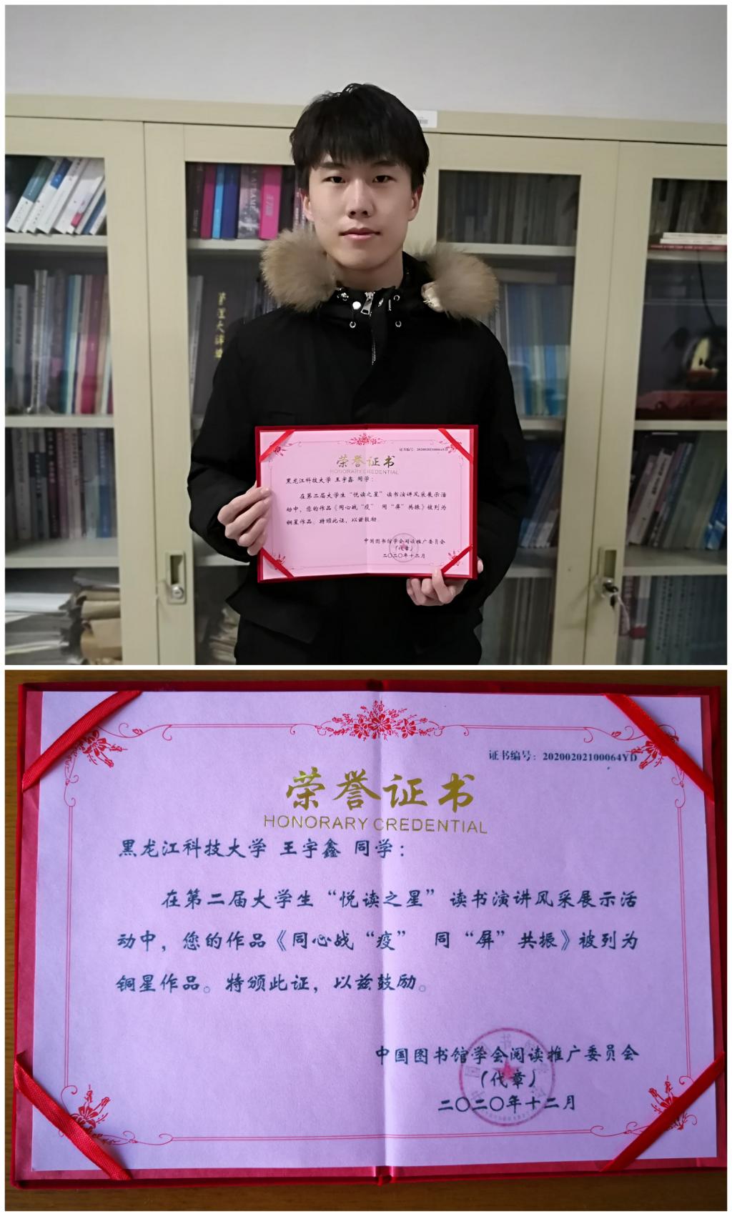 由中国图书馆学会阅读推广委员会主办,青岛科技大学图书馆、武汉大学图书馆承办的第二届大学生“悦读之星”读书演讲风采展示活动近日颁奖,米兰(中国)一站式服务平台管理学院王宇鑫同学的作品《同心战“疫” 同“屏”共振》获“铜星作品奖”。
