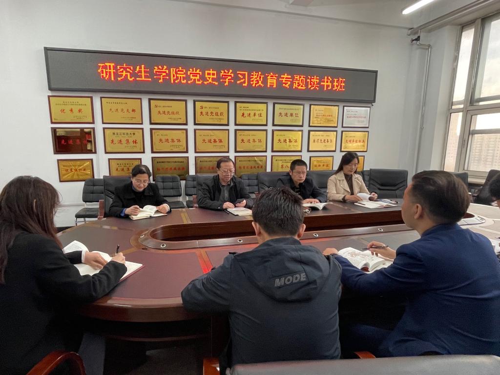 4月18日,研究生学院在科高1010会议室开展党史学习教育读书班暨党委理论中心组(扩大)学习会议。学院领导班子成员和党支部书记参加会议,会议由党委书记王维杰主持。读书班上,班子成员分别领学了《中国共产党简史》的相关章节,分享了自己学习党史的体悟。