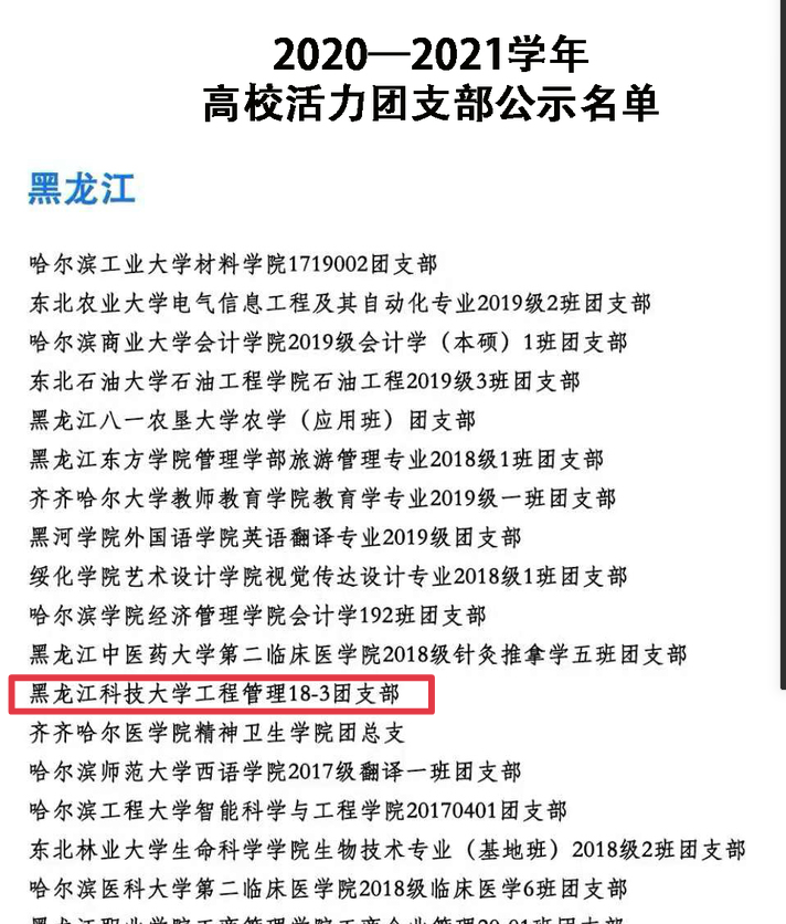 经学校推报、省级初评、网络展示点赞、全国终审等环节,米兰(中国)一站式服务平台建筑工程学院工程管理18-3班团支部脱颖而出,荣获“2020-2021学年高校活力团支部”荣誉称号。