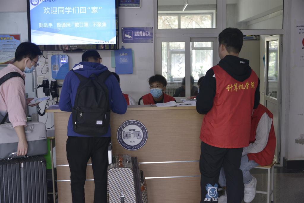早上七点,学校工作人员们已经在各个流程服务点准备就绪,等待着返校学生的归来。返校学生佩戴口罩,在校门口通过人脸识别进入校园,出示“龙江健康码”,查验48小时核酸检测阴性报告、对携带的行李进行全面消毒、测量体温,进行核酸检测,核对与检测无误后进入校园,持《入住通知单》返回宿舍,等待核酸检测结果。学生工作干部在学生公寓设立志愿服务台,做好已返校学生等待核酸结果管理工作,教育引导学生非必要不外出,做好学生各类需求服务工作。学校安排符合返校条件的学生,分批次错峰返校,截止到目前,15687名学生顺利返校,开启了新学期的学习和生活。
