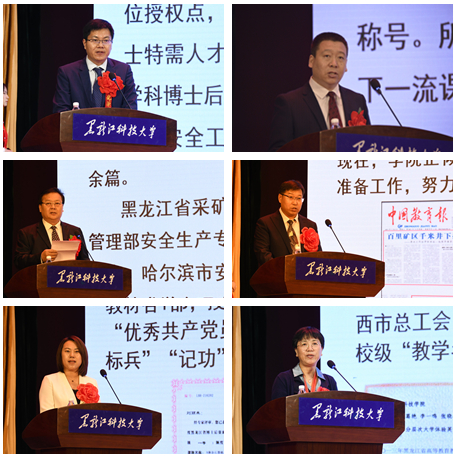 本科教育教学工作先进集体、研究生教育教学工作先进集体代表安全学院院长张保勇;本科教育教学工作先进个人代表电气学院教师李忠勤;研究生教育教学工作先进个人代表矿业学院教师刘永立;“三育人”先进集体代表矿业学院党委书记刘海涛;“三育人”先进个人代表环化学院教师刘丽来;“执教三十年纪念奖”教师代表麻秀丽等六名代表分别进行了经验交流。