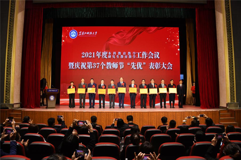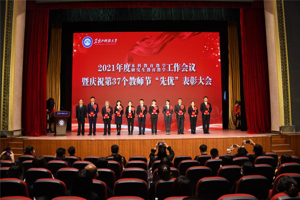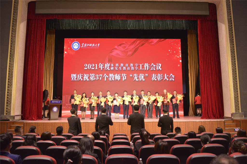 与会其他校领导分别向本科教育教学工作先进集体和先进个人、研究生教育教学工作先进集体和先进个人、“三育人”先进集体和先进个人等“先优”代表颁奖。