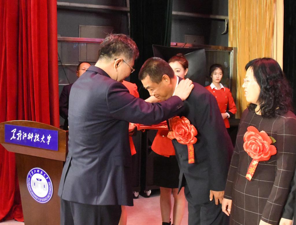 校党委书记周宏力,校长郝传波为获得“执教三十年纪念奖”教师们颁发奖牌和证书。