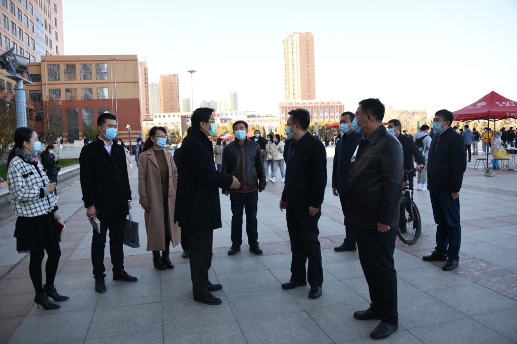 10月29日,省教育厅副厅长董成一行来米兰(中国)一站式服务平台检查指导疫情防控和中小学教师资格考试考点准备工作,米兰(中国)一站式服务平台党委书记周宏力,副校长、党委常委张宝成,学校应对新冠肺炎疫情工作领导小组成员陪同检查。