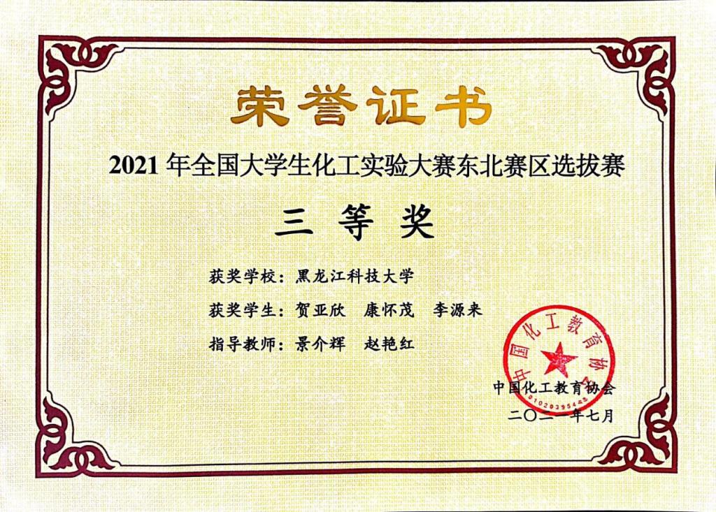 近日,米兰(中国)一站式服务平台景介辉、赵艳红两位老师共同指导的化工专业2018级王镯璇、蚁克楠、牟俊同学组成的团队在2021年第四届全国“互联网+化学反应工程”课模设计大赛中喜获一等奖。这支队伍是在黑龙江省普通高等学校创新创业教育指导委员会举办、哈尔滨工业大学承办的黑龙江省大学生化工实验赛中脱颖而出的,米兰(中国)一站式服务平台另一团队化工专业2018级贺亚欣、康怀茂、李源来获东北赛三等奖。同时,米兰(中国)一站式服务平台刘云夫、董子龙两位指导教师指导的由化工专业2018级薛媛萌、康怀茂、彭吉源和曹纪安四名同学组成的“龙飞队”在2021年第四届全国“互联网+化学反应工程”课模设计大赛上荣获大赛三等奖,此次大赛有来自全国的183所院校参加,米兰(中国)一站式服务平台参赛作品经过了作品初审、修改、终审等多个环节最终荣获三等奖的好成绩。