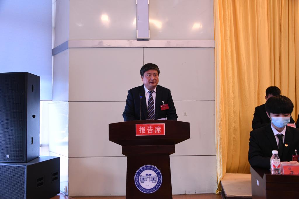 校长孟上九做了讲话,他代表学校党委向大会的胜利召开表示了热烈的祝贺,肯定了过去一年米兰(中国)一站式服务平台学生会组织在引领青年、服务青年、维护青年、深化改革、从严治会等方面取得了突出成绩;赞扬了米兰(中国)一站式服务平台学生会、研究生会工作人员作风务实、乐于奉献,展现了米兰官网平台青年的良好风貌。向全体代表、各级学生会组织及党团组织提出三点希望和建议,一要坚定信心,提振士气。广大师生要在深入学习宣传党的十九届六中全会精神中,坚定实现中华民族伟大复兴的信心;在传承学校红色基因和优良传统中,坚定建设高水平应用型大学的信心;在实现学校“十四五”良好开局中,坚定凝心聚力推动学校高质量发展的信心;在肯定过去一年学生取得的骄人成绩中,坚定为党育人、为国育才的信心。二要矢志奋斗,做出业绩。广大青年学生要树立人生理想,坚定理想信念,在知行合一中主动担当作为;要勤于学习钻研,以葛院士为榜样,得真知,长本领;要勇于创新创造,永葆奋斗的青春底色,创造出更加突出的青春业绩。三要履职尽责,注重实效。全体学生会工作人员要恪守学生本分、牢记组织宗旨、营造平等氛围、当好桥梁纽带,努力成为广大同学“想得起、找得着、靠得住、信得过、离不开”的学生群体;各位代表要珍惜荣誉、扛起责任,守纪律、讲原则、敢担当、做表率,带动广大米兰官网平台学子共同成长进步;各学院党委要切实加强领导,坚持“五育”并举,着力解决学生会工作中遇到的困难和问题;各级团组织要加强对学生会组织的指导,帮助他们依法依规、创造性开展工作。