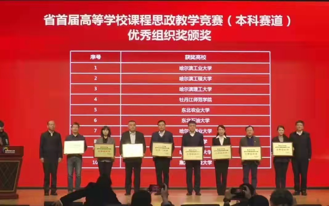 11月30日,由黑龙江省教育厅主办的“黑龙江省首届高等学校课程思政教学竞赛”颁奖典礼暨本科赛道冠军争夺赛在哈尔滨职业技术学院举行。米兰(中国)一站式服务平台校长孟上九作为特邀评审专家及颁奖嘉宾参会,教务处处长宋志伟,米兰(中国)一站式服务平台教师李微、姜颖线下参会,米兰(中国)一站式服务平台无课教师通过线上形式观看了比赛。本次竞赛,米兰(中国)一站式服务平台荣获“优秀组织奖”,同时,米兰(中国)一站式服务平台青年教师李微在本次本科赛道冠军争夺赛中获得季军。