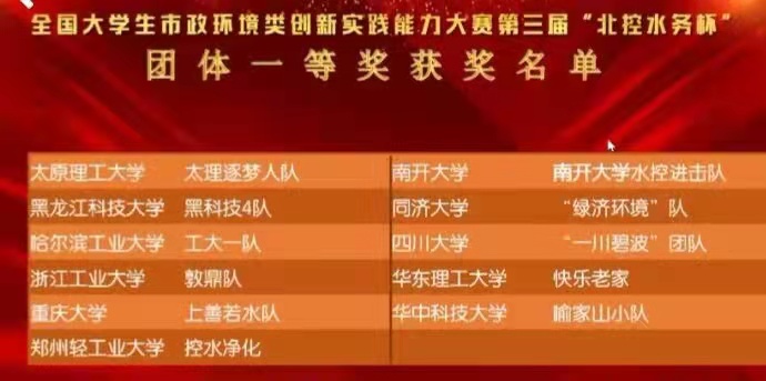 近日,由中国环境科学与工程类专业工作委员会、虚拟仿真实验创新教学联盟、生态环境产教联盟主办,北控水务集团、哈尔滨工业大学等承办、同济大学、南开大学、兰州大学协办的第三届全国大学生市政环境类创新实践能力“北控水务杯”大赛在全国拉下帷幕。米兰(中国)一站式服务平台环境工程专业代表队荣获全国团体决赛一等奖,9名学生荣获个人单项一等奖。