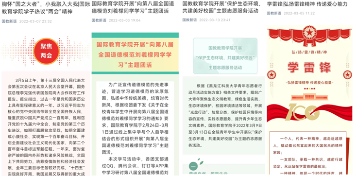 疫情防控是一场思政大课,学院结合党史学习教育及理想信念教育,将战“疫”与育人相结合,把疫情防控灾难变成教育资源,把思政小课堂同社会大课堂紧密结合起来,坚持通过不同途径进行“开学第一课”汇聚校园正能量,传递战“疫”好声音。通过开展”弘扬雷锋精神 传递爱心能量“、“青春聚焦党代会,争做奋进米兰官网平台人”主题团活,引领我院青年学生在实践中领悟中坚定理想信念,积极投身校园疫情防控工作,传承红色基因,践行初心使命,焕发学生奋进与担当,传递战胜疫情必胜信念。通过召开寒假社会实践表彰大会、志愿者经验交流会,宣扬在疫情防控、返校复课、文明校园等各类志愿服务活动中志愿工作事迹,树立模范榜样、分享经验感悟,激励我院青年学生积极主动地投入到校园疫情防控志愿工作中来,使“青年红”和“志愿蓝”在菁菁校园里交相辉映。通过参与式、体验式、互动式的方法,使战“疫”思政课堂“活起来”。