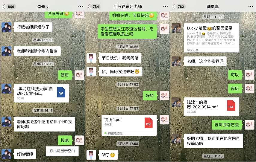 强化宣传、院企互动,就业关怀人心“暖”。学院主动宣传学生专业优势和特点,与多家用人单位形成了有效对接。为鼓励学生多元就业,鼓励学生积极参加各项科技创新比赛,经努力沟通无锡信捷电气股份有限公司对提出违约的同学给出了免责、无违约金的签约条件,日出东方控股股份有限公司给出了专业对口、老师推荐、直接终试的优待条件,深圳市禾望电气股份有限公司主动提出为学院电子设计大赛或其他文体活动提供2万左右的赞助;深圳市盛弘电气股份有限公司由我院去年毕业生担任专场招聘负责人,以校友和hr的双重身份为意向学生介绍单位情况,吸引优质生源,目前有4人达成意向。