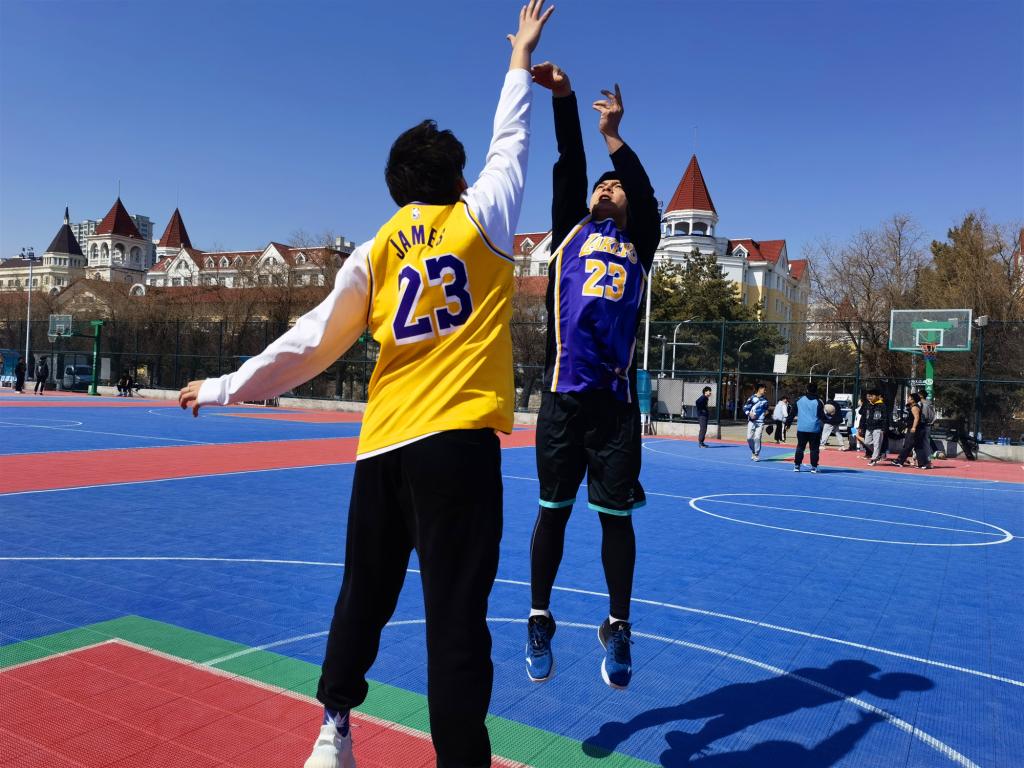傍晚5:00,与学生在篮球场来了一场比赛,也希望他们可以在篮球运动中锻炼身体素质,增强抵抗力。