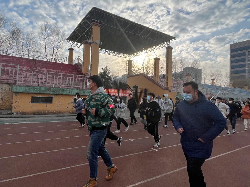 早上6:30,组织学生晨练,气温已经回暖,呼吸着新鲜的空气,学生们逐渐找到了运动的乐趣。