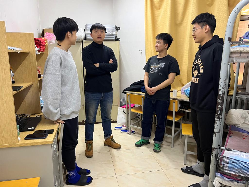 晚上8:00,来到学生寝室处理学生寝室矛盾,疏导学生情绪,缓解学生心理压力。不要忽视任何一次学生矛盾,这是学生成长路上的情绪必修课。