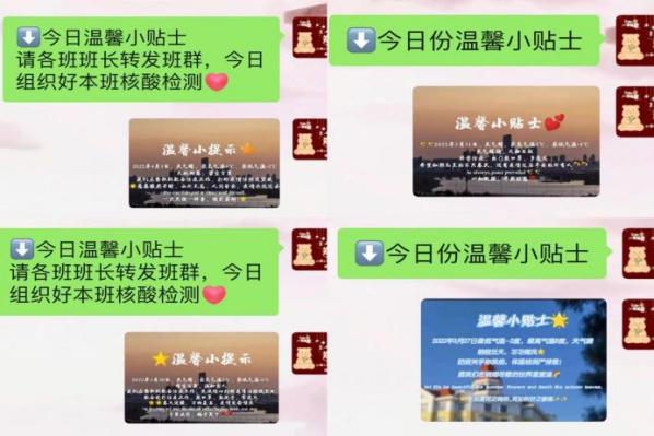 编者按:2022年3月,新冠肺炎疫情骤然爆发,高校作为抗击疫情特殊的“战场”, 全校学生党员、各级团学干部闻令而动,发挥带头作用,不惧疫情,冲锋在前;广大青年学生积极响应,严格遵守各项防控制度,认真配合核酸检测和各种排查工作,做好师生互动,高质量上好线上课程;一个个挺身而出的身影,一幕幕感人的瞬间,一份份庄严的承诺,一张张感人至深的信件,无不彰显着米兰官网平台学子的担当与奉献精神,为此我们开辟“学生抗疫笔记”专栏,今天推出第1期,由外国语学院学生胡芷晴、郑思怡、丛瑶、李子怡撰写的《花开疫会散 日暖春可期》,让我们去感受他们用最简单朴实的言行书写的伟大抗疫精神。