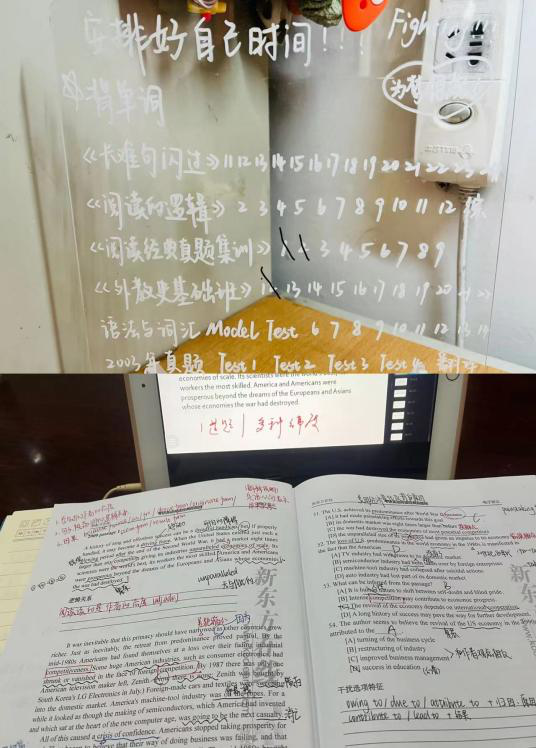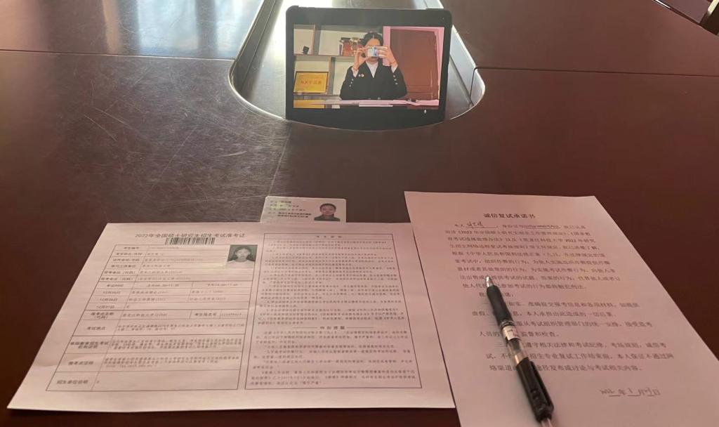回想疫情防控下的备考之路走的并不容易,每两天一次的核酸检测,图书馆消毒闭馆,学生错峰错位就餐,所有的面授课改为线上课……这一天也同样,核酸检测志愿者们好像也早已熟悉了我为了节约时间提前排队的习惯,看到我“大包小裹”便也不多叙旧,签到过后我便去往学院为我们准备的“复试教室”开始重复演练。我的赵红、耿成晶、刘欢三位人美心善的辅导员老师,牺牲自己的个人休息时间,从她们擅长的方向,分别针对线上复试中可能出现的问题对我进行专门指导,提前设计考题锻炼我的临场应变能力。复试前,海文考研的班主任和专业课老师也耐心的陪我在腾讯会议上进行一遍遍的彩排演练,给予专业指导,从复试的自我介绍准备到专业问题提问,从中文到英文,从礼仪到服饰,从座位到摄像摆放。因为她们的关怀和鼓励我开始想,说不定我这个跨专业考生复试也可以做到第一名呢?没什么不可能的。