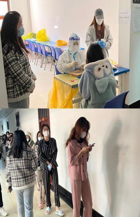 英语20-2班,丛瑶:昨天晚上刚洗漱好准备睡觉,拿起手机一看消息,思怡姐在群里发了通知“明日进行核酸检测,需要几位志愿者,谁有时间呀?”还好我看了一眼!都已经有几个同学报名了,我赶紧打字“我有时间!”每次报名当志愿者的时候都要拼手速,大家都争先恐后的,稍微慢点就没名额了。