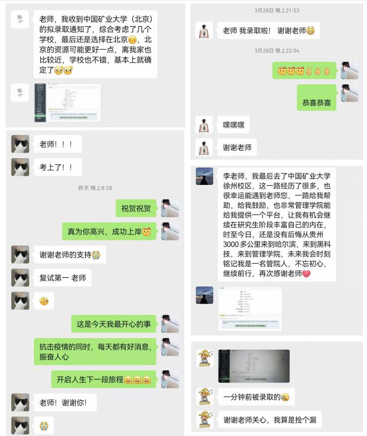 “老师,告诉您一个好消息,我被录取了,复试第一名”