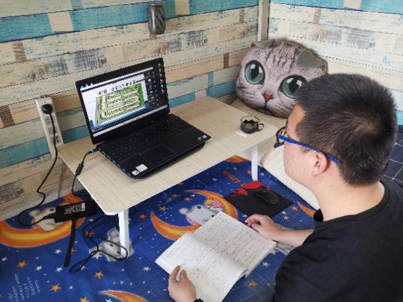 “请同学们打开摄像头” “我找个同学来回顾一下上节课学习的内容” 虽然是线上上课,但老师们通过问卷调查,不断改进教学方式,科任老师也会用各种方法来督促我们认真学习,课前提问、开摄像头、课堂上的随机提问都让我们上课不敢走神。课间休息的时候,我向寝室学习督察队汇报班级学习情况。