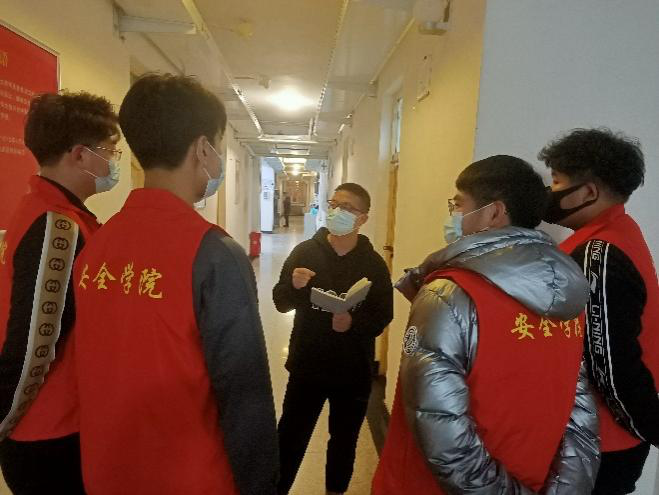 在每天返回寝室后,我会去寝室-党员分担区走一走,与他们聊一聊并检查晚归,了解他们的心理状况,缓解他们因为长时间呆在学校出不去的焦躁,并及时在党员群中汇报;作为应急21-1班的辅学学长,我会经常进入他们的寝室,与他们聊一聊,分享一些我的学习经验,帮助他们解决一些问题。