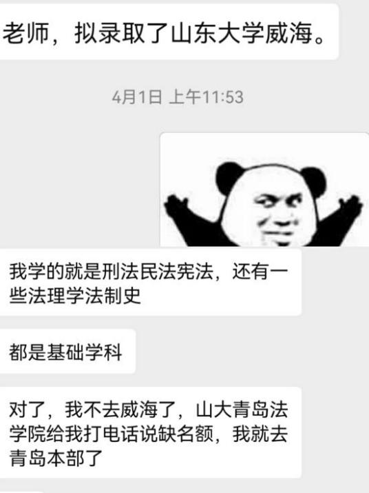 10:00,18级的学生打来电话,她的考研政审表需要盖章。这一段时间陆续有考研的同学来给政审表盖章。前几天也是18级的一名同学发来微信,告诉我个好消息,他被山东大学法学院本部录取了,真为他感到高兴!