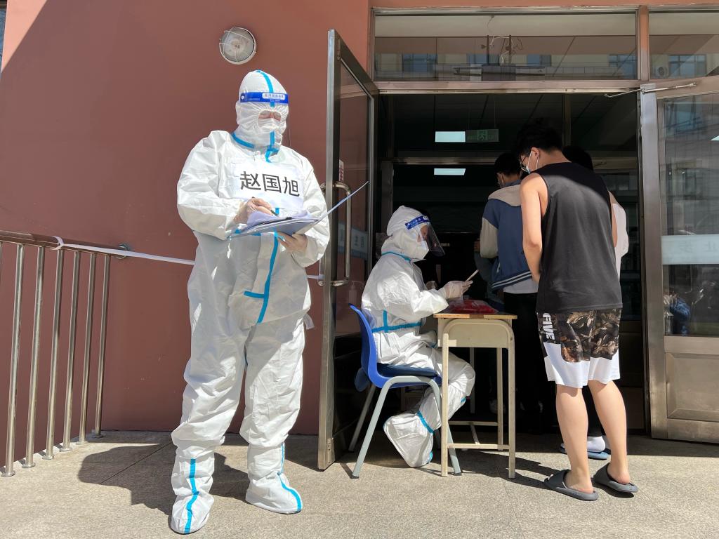 10:45按照学生处要求,我和同事们赶到文化广场布置核酸检测场地。我负责学院的志愿者安排,面对学院人数基数大、工作繁杂的特点,志愿者们用积极的工作态度化解了种种难题,这次与以往不同的是,核酸检测场地设在了学生公寓门口室外场地,志愿者们坚守岗位没有怨言,用辛勤的付出换取了同学们的积极配合。