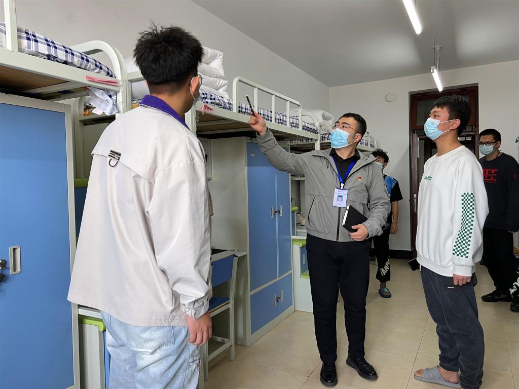 21:50前往公寓带领志愿者检查晚归、夜不归寝情况,确保全员在寝。本来只是检查归寝情况,但是看到内务脏乱的寝室还是忍不住唠叨两句,当老师就是这样,不会放过任何一个说教的机会。