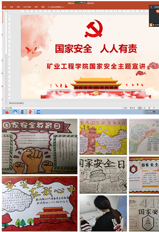 矿业学院在全体学生党员中开展线上专题党课教育,学习了国家安全知识,教育引导学生守住党员本份,坚守国家安全观,同时以实际案例为警示,告诫学生党员危害国家安全的行为处分,坚决不能做出有害国家、有害党的任何事情。在青年学生中开展国家安全手抄报活动,通过教育引导、自我感悟、观影学习等多种途径开展国家安全的相关学习,同学们提高了思想认知,认真思考了作为新时代大学生应该做的和能够做的事情,为迎接党的二十大胜利召开营造良好氛围。