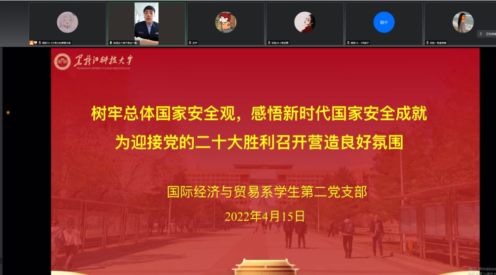 经济学院在线上组织学生党员召开了“树牢总体国家安全观,感悟新时代国家安全成就,为迎接党的二十大胜利召开营造良好氛围”主题党日活动。此次党日活动特邀请南岗分局公安干警为党员学生对电信、网络诈骗及邪教组织相关安全知识进行普及并分享了真实网络诈骗案例及预防诈骗小方法。本次党日活动让党员学生对于电信、网络诈骗有了更深层次的了解,进一步树牢国家安全观,增强识骗防骗拒骗意识。